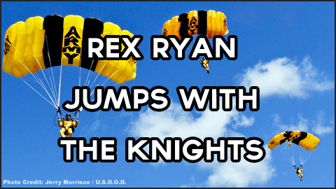 Rex Ryan, coach of the Buffalo Bills football team had the opportunity to jump with the Army Golden Knights at the Thunder of Niagara Air Show recently. Watch as SFC Jon Ewald takes the coach for a 120 MPH ride above Niagara Falls Air Reserve Station. #ArmyTeam #DOD #BuffaloBills #BuffaloNY